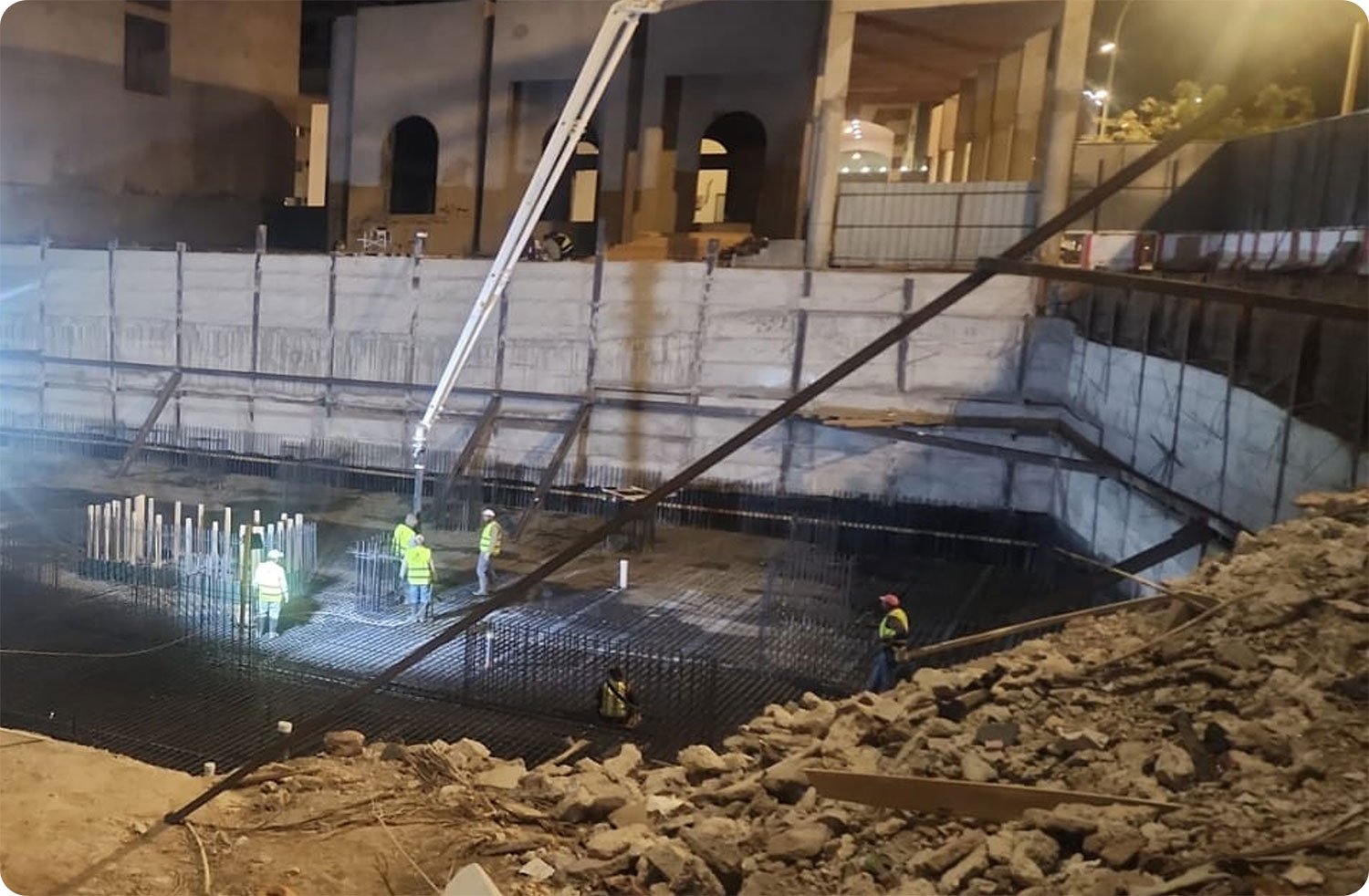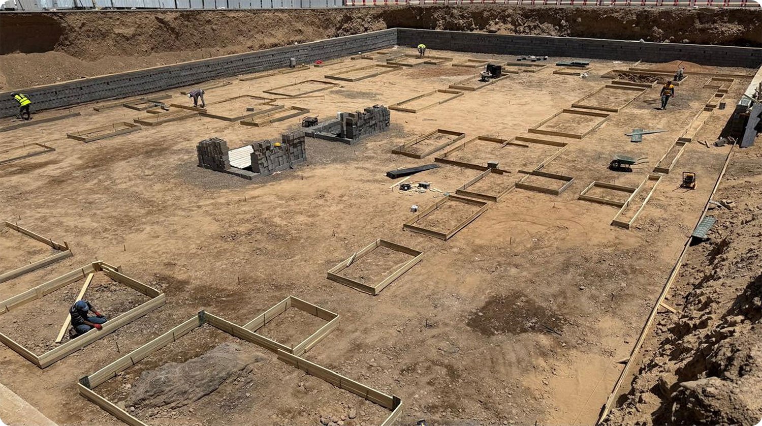 A hotel project executed starting from excavation and site preparation up to the casting of concrete foundations.
