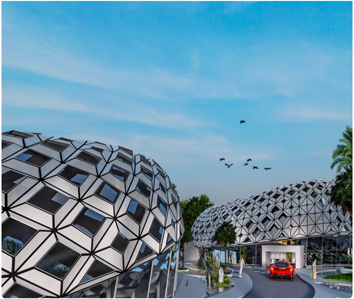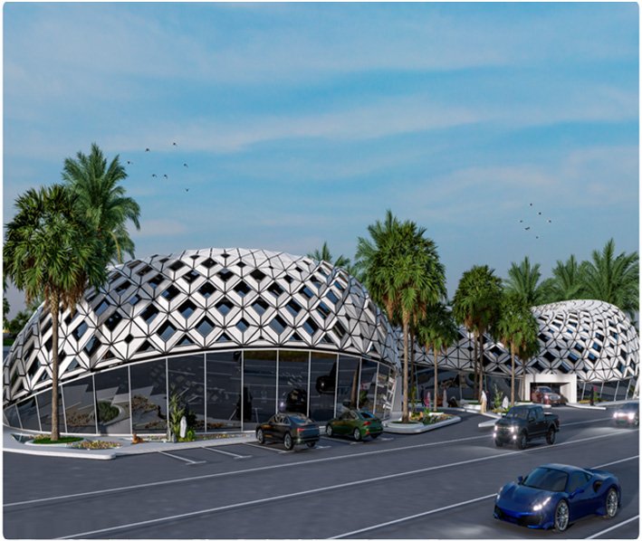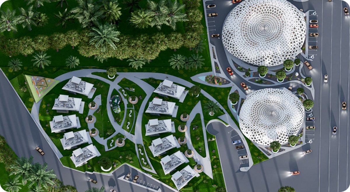 The halls are designed with elegant facades and spacious areas that accommodate various events, while the duplex villas feature contemporary lines that achieve harmony between beauty and comfort.
