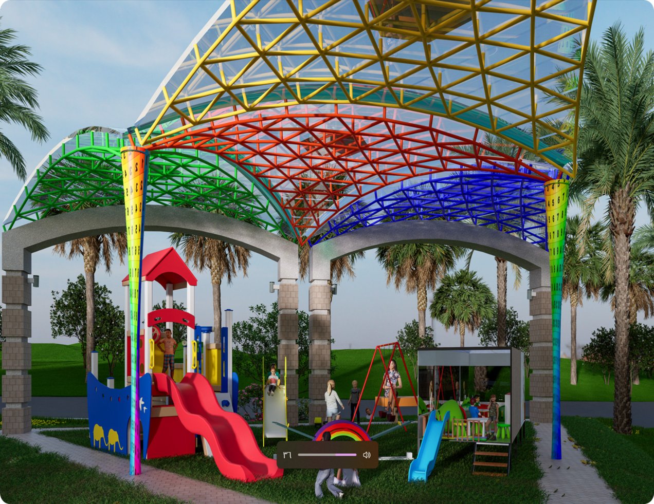 The garden and children’s play area have been added to give the project a lively character, reflecting a balanced lifestyle that combines luxury and family comfort.